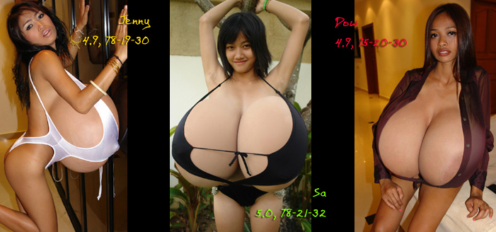 "Porn", by the way, seems to be a regular name in Ding Dong Land. Mysterious Orient. Anyway, here are two more vampirellas: Ae and Fun! I met the last one last year already, collected some pics, and now again. Very nice girl, likes to pose for pics, good dancer too! I've still some more girls stored from this and the last trip, but I think twenty-three stunners should be enough for one term. As you might have noticed, they show much more flesh than in the sets before, and I taped tons of footage of them moving, dancing, running, swinging, whopping, massive grabbing, extreme smothering, slapping, pinching and spanking - all what huge tits are made for! That's a wrap! | ![]() |